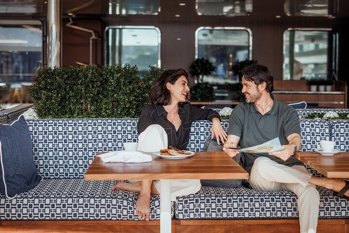 When it’s time to set sail, settle into a cozy couch on the aft deck at the Zephyr Lounge. As you enjoy a morning coffee or the perfect nightcap at the end of the evening, watch the scenic coastline diminish on the horizon.